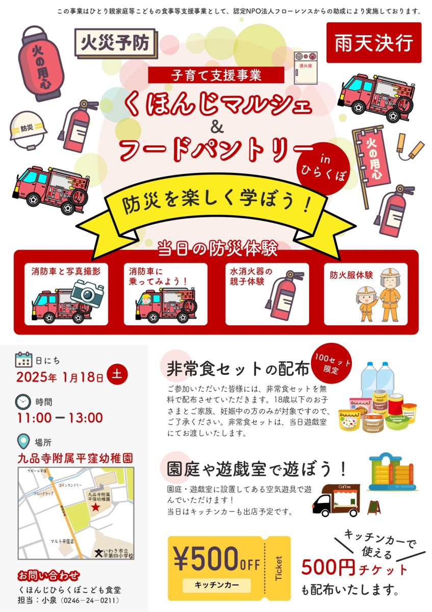 当日キッチンカーで使える500円チケットと日用品の配布もございます。