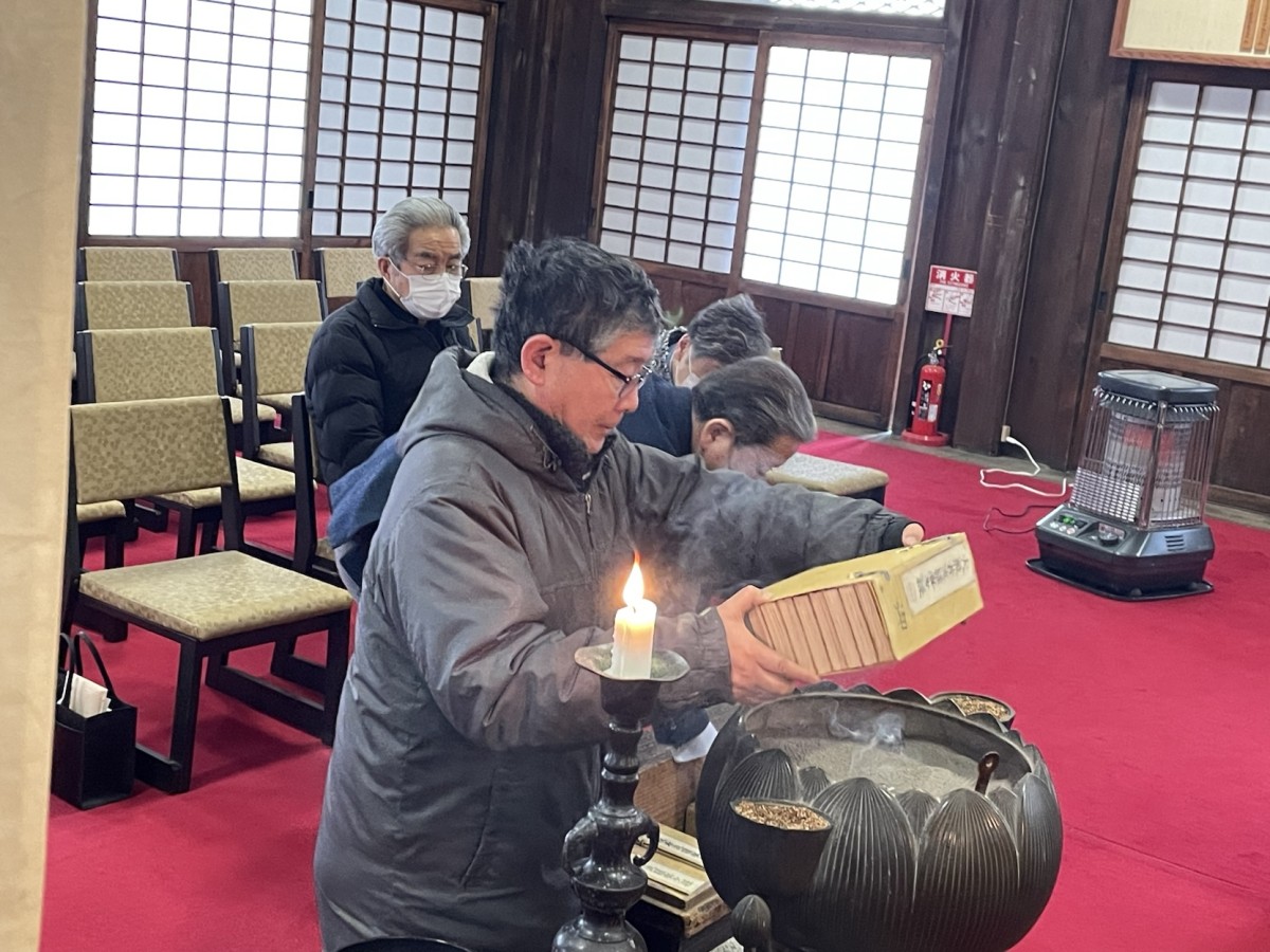 浄土宗ではあまりお唱えする機会のない「般若心経」をお唱えし、経典を香に薫じて、平四町目区内会の商売繁盛・家内安全をご祈念いたしました。