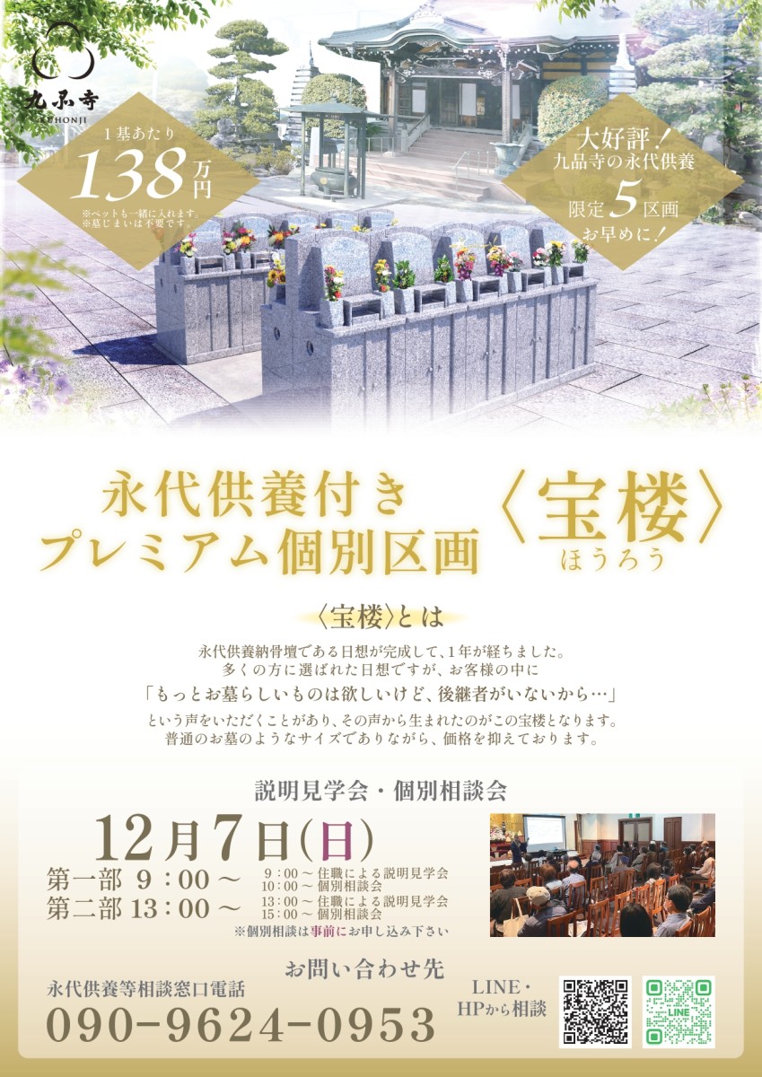 あわせて墓地の見学会と住職による説明会、そして、永代供養、葬儀、供養等の個別相談会を開催いたします。