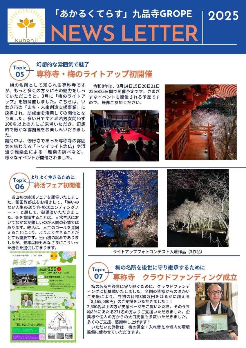 九品寺グループ(九品寺・専称寺・明照学園)では、令和7年もさまざまな事業に取り組んでまいりました。